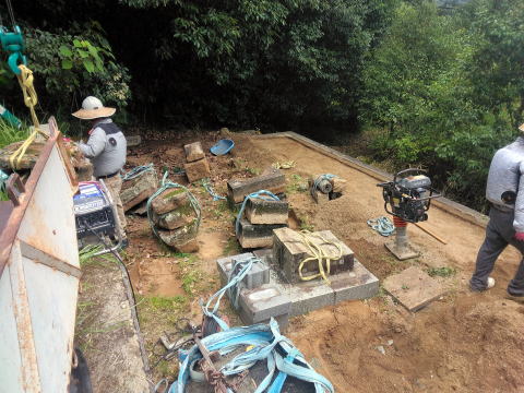 石造りの大型台の為、見えて無い基礎に苦労しています。